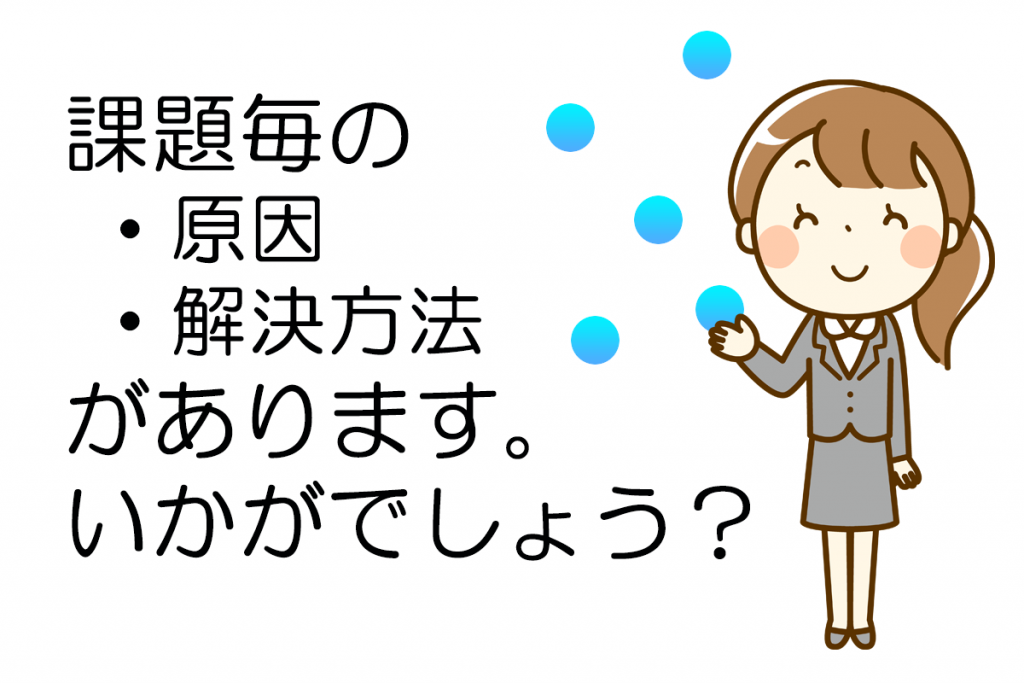 先の現状分析で注目すべき要因がはっきりしたら、それを解消していく必要があります。ここでは、課題や要望に応じたアプローチを紹介します。